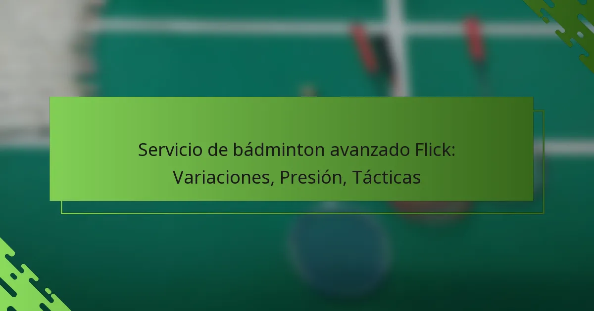 El servicio de flick se caracteriza por su rápida ejecución y la capacidad de cambiar la trayectoria del volante o la pelota de manera inesperada. Su propósito principal es sorprender a los oponentes, forzándolos a una posición defensiva y creando oportunidades para que el servidor obtenga una ventaja en el intercambio.